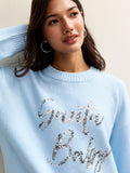 Cosy up this holiday season in a glamorous light blue jumper. This crew-neck style features a relaxed fit for comfort, while the sequinned 'Santa Baby' logo adds a sparkly touch to any outfit